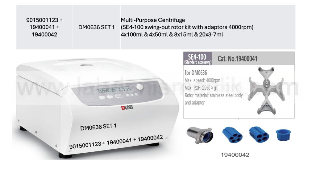 Santrifuj DLAB DM0636, 9015001123, Multi-Purpose Centrifuge 300-6000rpm, Max. Capacity 100 mL × 4