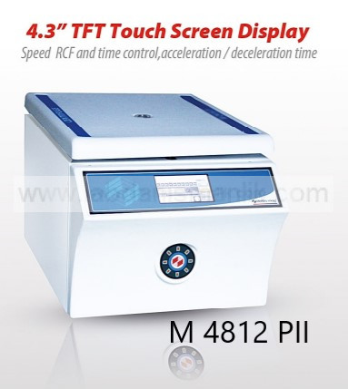 Santrifüj Elektromag M 4812 PII, 12×15 ml. tüp kapasite, indüksiyon motor, dokunmatik, digital hız-timer ve RCF gösterge – Sabit Açılır Rotor